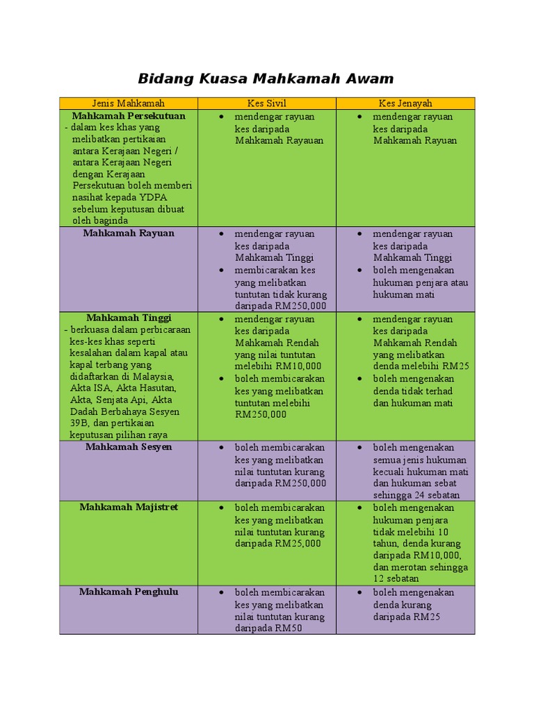 Hakim hakim besar mahkamah tinggi. Jenis mahkamah rayuan syariah mahkamah tinggi syariah dan mahkamah rendah syariah mts jenayah penjara tak lebih 3 tahun denda tak lebih rm 5000 rotan tak lebih 6 sebatan mts kes sivil pertikaian tak melebihi rm 50 000 mrs penjara tak lebih 6 bulan denda tak lebih rm 1000. Bidang kuasa rayuan. Ditubuhkan menurut perkara 121 fasal 2 perlembagaan persekutuan.