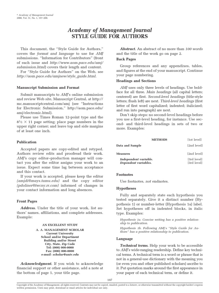 1 914 326 1800 fax. Take a break learn. Journal articles books book chapters reports web pages. Academy of management journal quick referencing guide the information in this guide is based on the academy of management journal style guide for authors.