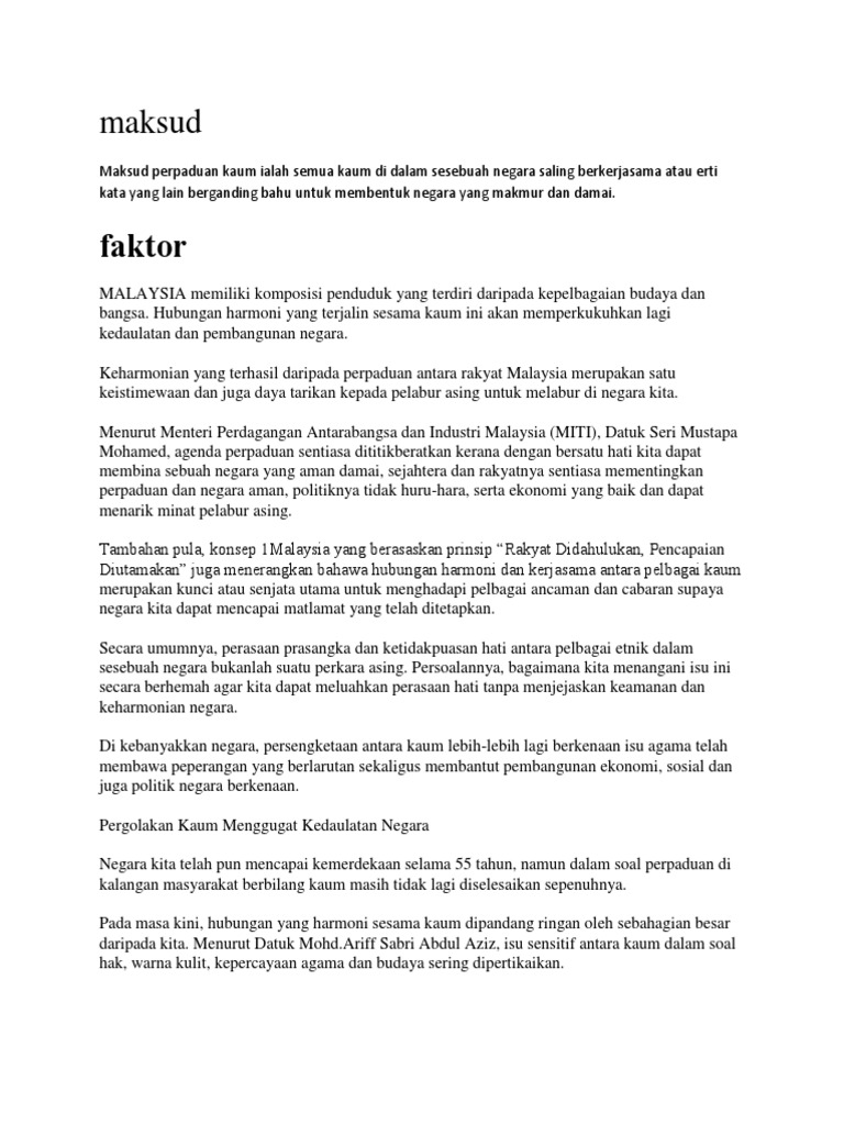 Adat ini menekankan konsep demokrasi dan muafakat. Melalui slogan satu malaysia yang diperkenalkan oleh perdana menteri malaysia dato seri mohd najib b tun abdul razak pelbagai kaum dan budaya ini dapat disatupadukan dan wujudnya perpaduan yang kuat di kalangan semua warga negara ini. Kaum iban merupakan salah satu kaum yang terdapat di malaysia. H la dapat mengenal asal usul keluarga dan negara kita h 1b memahami adat istiadat tradisi dan budaya bangsa f2 mengambil iktibar h2a membawa pengajaran dan iktibar daripada peristiwa lalu 1 12b tidak mahu mengulangi kesilapan masa lalu 1 13b h3c memupuk patriotisme menghargai warisan negara untuk dihayati generasi akan datang.