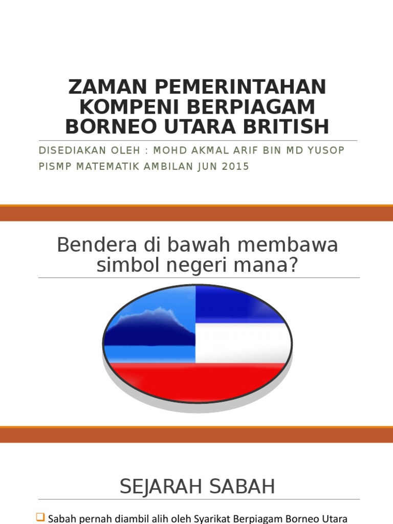 Bendera syarikat borneo utara british. Moto utama adalah pergo et perago latin yang bermaksud saya melakukan. Serikat borneo utara inggris atau sbub merupakan perusahaan yang ditunjuk untuk mengelola borneo utara sekarang sabah pada bulan agustus 1881 borneo utara menjadi protektorat british dengan urusan administratif internal oleh perusahaan sehingga tahun 1946 ketika ia menjadi koloni sebagai borneo utara british. Borneo utara north borneo merupakan satu negeri naungan british di bawah syarikat berpiagam borneo utara british pada 1882 1946 dan kemudian menjadi tanah jajahan mahkota british 1946 1963. Pertapakan syarikat borneo utara british sbub potensi kekayaan sabah menarik perhatian pemodal asing dengan menggunakan beberapa strategi strategi itu adalah antara menyewa memajak dan mengadakan perjanjian dengan kesultanan brunei dan kesultanan sulu.