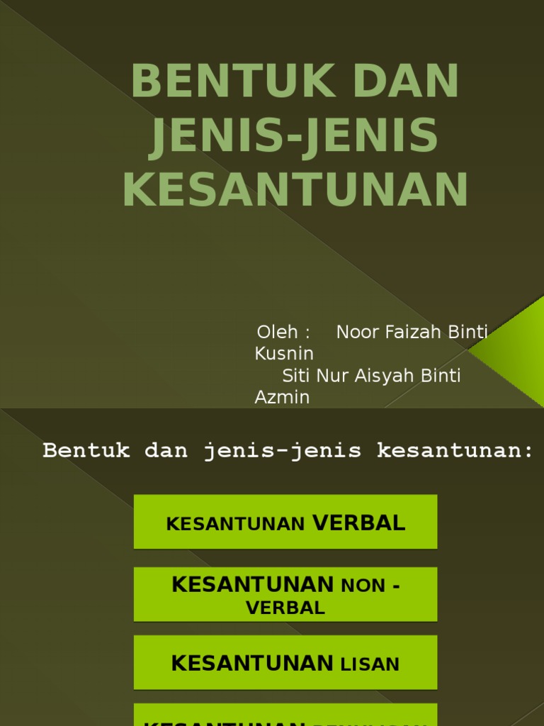 Penggunaan bahasa yang sopan beradab dan halus b. Bentuk dan jenis kesantunan bahasa 3 1 kesantunan verbal pada umumnya kesantunan bahasa bermaksud kesopanan dan kehalusan dalam berbahasa semasa berkomunikasi sama ada melalui lisan perlakuan atau tulisan kepada sesiapa sahaja. Dalam semua suasana dan urusan rasmi kesantunan bahasa haruslah berasaskan ragam bahasa rasmi iaitu ragam bahasa yang secara maksimumnya mematuhi peraturan peraturan bahasa baik daripada sudut linguistik sosiolinguistik mahupun pragmatiknya. Bentuk dan jenis kesantunan kesantunan lisan kesantunan penulisan kesantunan lisan kesantunan dalam komunikasi lisan melibatkan.