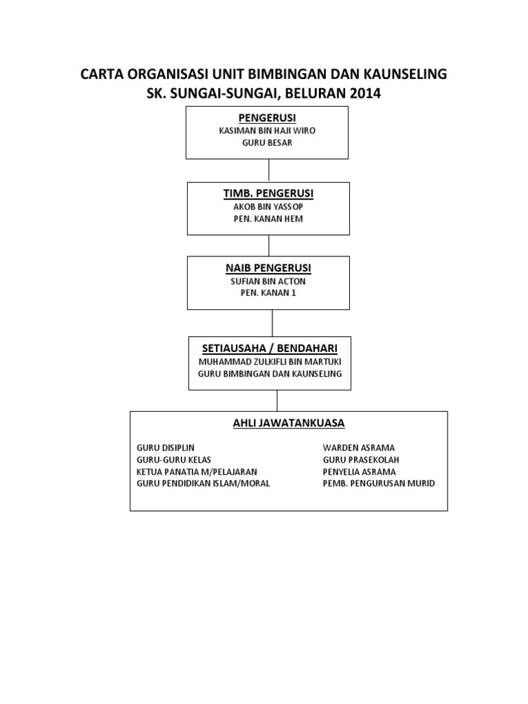 Carta organisasi bimbingan dan kaunseling sekolah rendah. Hak cipta terpelihara unit bimbingan dan kaunseling sekolah kebangsaan seksyen 7 jalan 7 3 43650 bandar baru bangi selangor d e. Melaksanakan program program berdasarkan takwim sekolah yang telah diluluskan. Related posts to contoh carta organisasi bimbingan dan kaunseling sekolah rendah contoh carta organisasi bimbingan dan kaunseling sekolah rendah 2017 12 27t08 07 00 08 00 rating. Melaksanakan pengoperasian pengurusan dan pentadbiran perkhidmatan bimbingan dan kaunseling sekolah.
