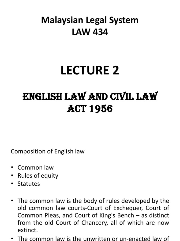 Malaysia legal history finals mlh tri 1 preview text application of sections 3 5 and 6 of the civil law act 1956 when malaysia was formed in 1963 there were three separate statutes authorising the application of english law which are s 3 5 6 of the civil law ordinance 1956 in peninsular malaysia application of laws ordinance 1956 in sabah and application of laws ordinance 1949 in sarawak. Civil law act 1956. Section 3 of the civil law act 1956 only requires any court in west malaysia to apply the common law and the rules of equity as administered in england on 7 april 1956. This act may be cited as the civil law act 1956.