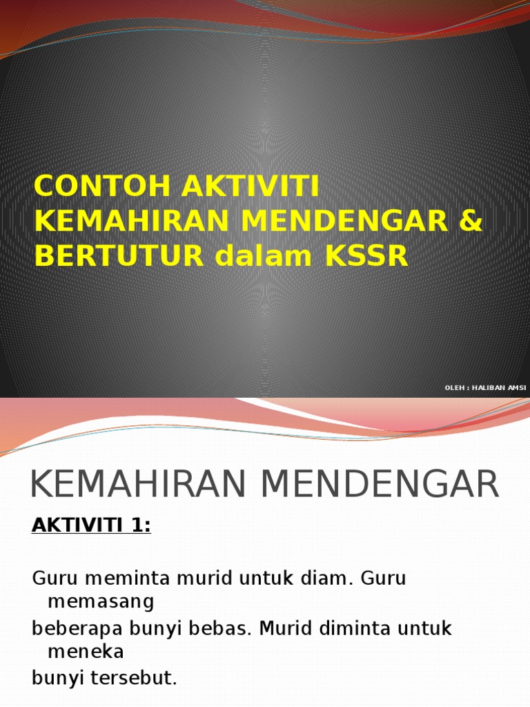 Contoh Aktiviti Kemahiran Mendengar Dan Bertutur