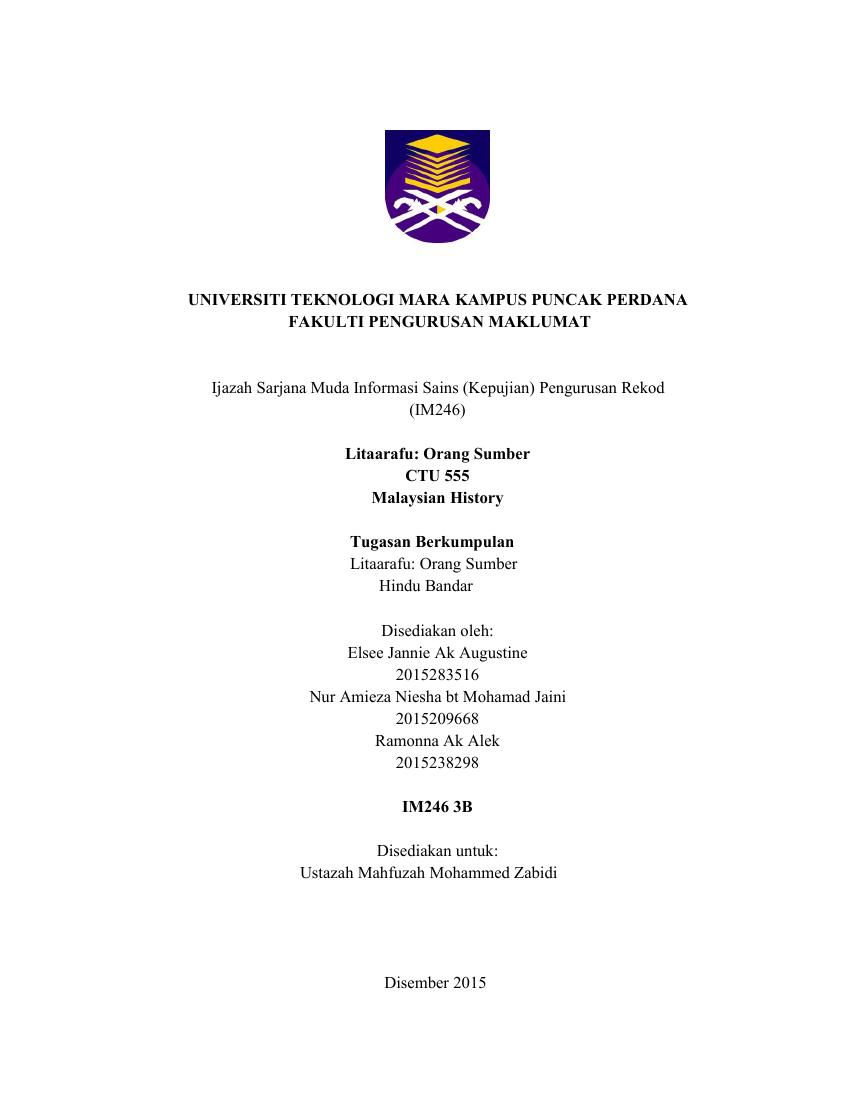 Pluraliti masyarakat alam melayu dalam sejarah ctu 555. View full report ctu 555 sejarah malaysia kumpulan 2 pdf from ctu 555 at universiti teknologi mara. Report litaarafu sabah. Ctu 555 malaysian history courtesy manners nur amieza niesha bt.