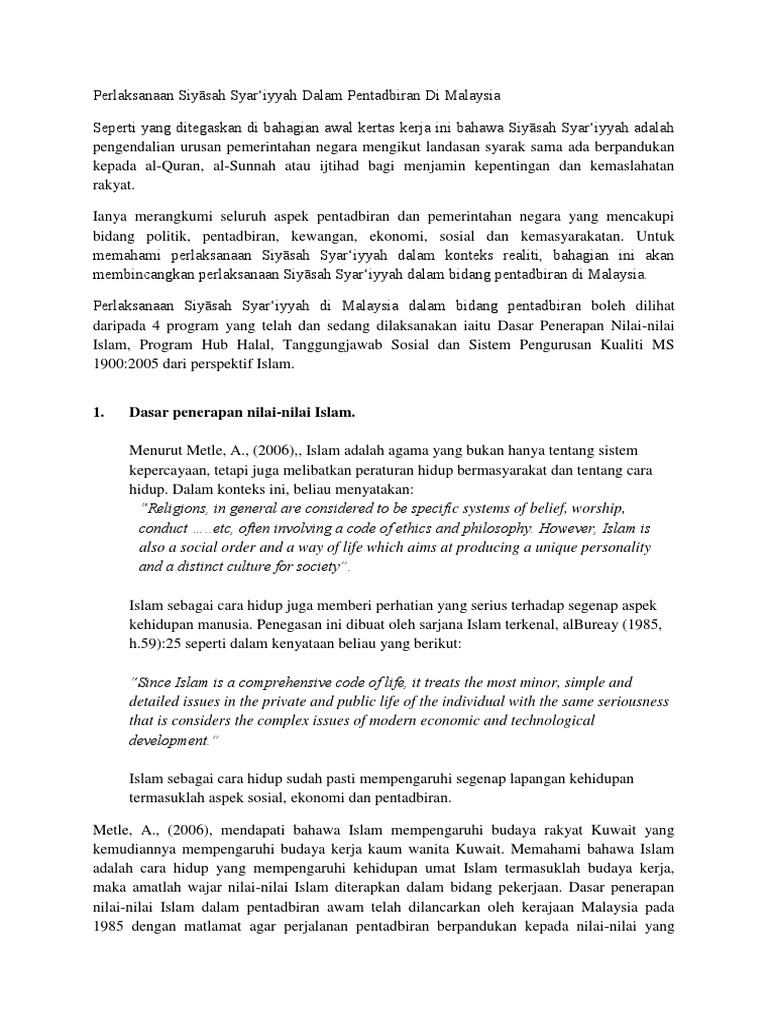 Penerapan Nilai Nilai Islam Dalam Pentadbiran Di Malaysia By Haf Yanie