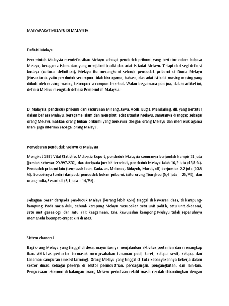Budaya pengertian dan definisi. Masyarakat melayu di malaysia mempunyai pelbagai jenis pakaian tradisional yang telah pun dipakai sebelum zaman kesultanan melayu melaka lagi. Adat resam merupakan kebiasaan cara hidup yang diamalkan oleh sesuatu masyarakat yang dapat menggambarkan corak budaya masyarakat tersebut. Dalam konteks malaysia hubungan harmoni antara pelbagai kumpulan etnik dapat membina sebuah masyarakat malaysia yang teguh.
