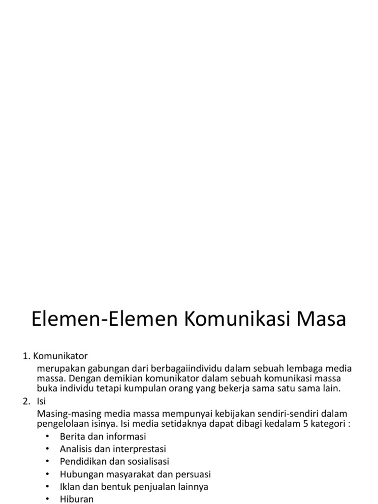 Elemen Elemen Komunikasi Massa