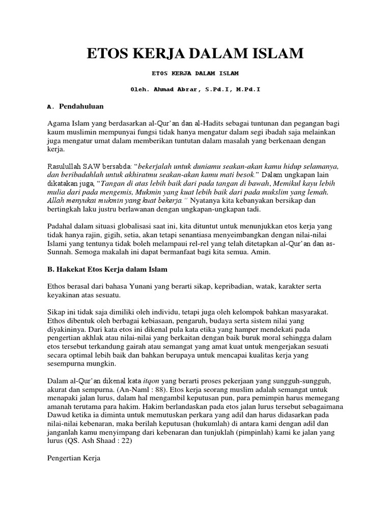 Pengertian etika kerja dalam islam yang perlu anda ketahui rasulullah saw bersabda sesungguhnya allah mencintai salah seorang diantara kamu yang melakukan pekerjaan dengan itqon tekun rapi dan teliti hr. Etika kerja dalam islam lagu. Seperti juga pandangan bekas timbalan ketua pengarah institut kefahaman islam malaysia ikim datuk dr. Tuesday 30 june 2015.