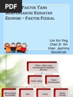 Faktor fizikal berkaitan dengan faktor alam semula jadi yang telah sedia ada seperti. Bentuk muka bumi atau bentuk bumi ialah ciri semula jadi permukaan pepejal bumi atau jasad planet lain. Malaysia mempunyai bentuk muka yang menarik yang terdiri daripada pulau pinggir laut saliran tanah pamah dan tanah tinggi. Daratan terdiri daripada gunung banjaran dan bukit tanah pamah lembah dan sungai.