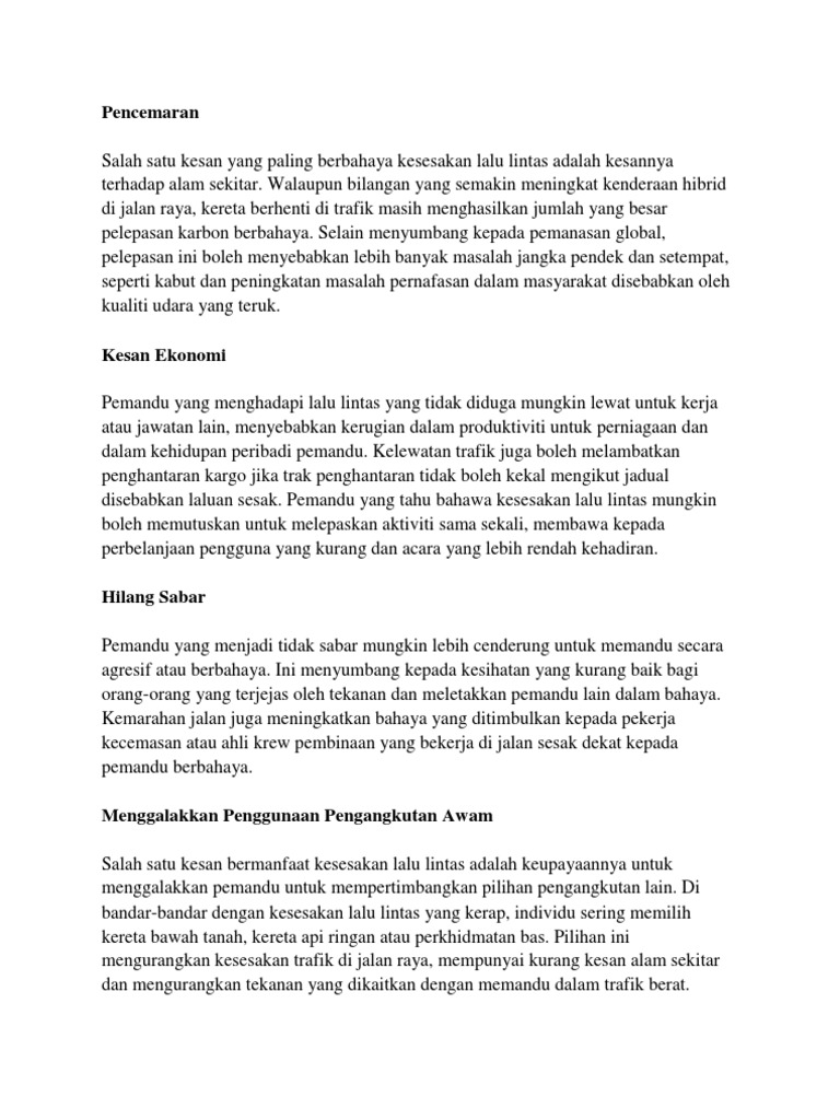 Faktor kesesakan lalu lintas di bandar. Pakar psikologi dr meriam omar din berkata walaupun kesesakan lalu lintas bukan satu satunya masalah yang boleh menyebabkan pemandu kenderaan berada dalam. Faktor dan kesan kesesakan lalu lintas stpm study sunday 24 august 2014 print perkembangan sektor pengangkutan darat moden di negara kita bermula pada tahun 1930 an apabila penjajah british meluaskan kuasanya di tanah melayu. Pencapaian 2 14 juta. Mengawal masalah kesesakan lalu lintas secara efesien perlu di ambil agar proses pembandaran tidak terbantut.