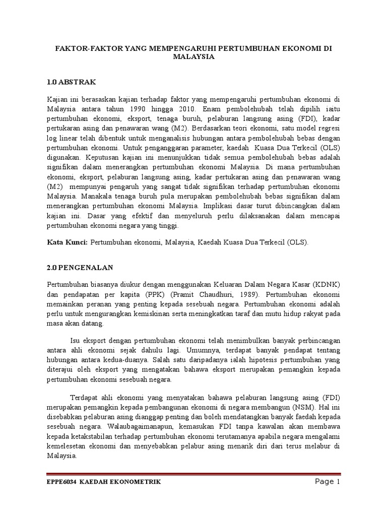 Penampan luaran yang mencukupi. Pertumbuhan ekonomi ialah proses perubahan kondisi perekonomian suatu negara secara berkesinambungan yaitu dengan menunjukan keadaan yang lebih baik dalam periode tertentu. Aktiviti sektor swasta lebih pesat dan kekal sebagai pemacu utama pertumbuhan. Jurnal ekonomi malaysia jem is a scopus indexed peer reviewed journal published by ukm press penerbit ukm universiti kebangsaan malaysia the journal publishes original research articles as well as research notes comments and book reviews on all aspects of economics particularly those pertaining to the developing economies.