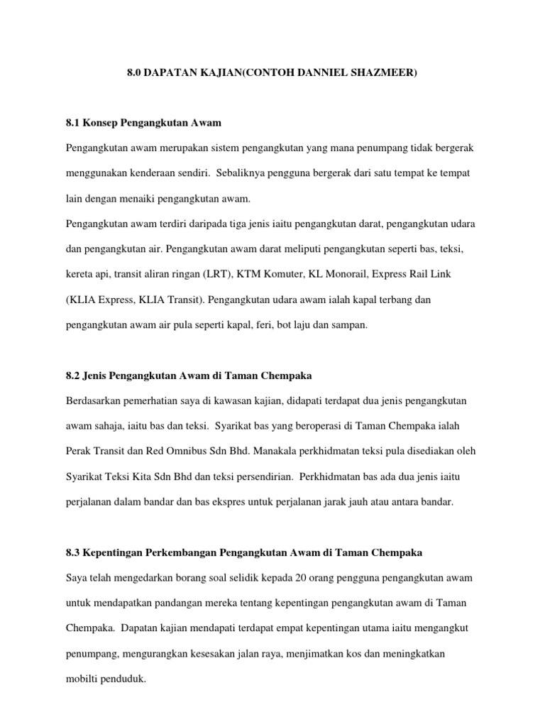 Hasil kajian konsep pengangkutan awam. Sistem pengangkutan biasanya boleh dibahagi kepada beberapa pembahagian bergantung kepada cara ia bergerak kuasa dan lain lain. Bimbingan peperiksaan kerja kursus dan pbs format baru. Contoh penulisan kaedah kajian kerja kursus geografi 2013. Data kajian dianalisis menggunakan statistik deskriptif iaitu kekerapan dan peratus.