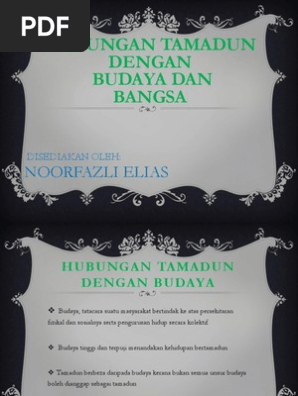 Hubungan tamadun dengan agama budaya dan bangsa. Budaya ditakrifkan sebagai adat sastera institusi sosial dll. Pengenalan hubungan tamadun dengan agama konklusi peranan agama adalah membentuk pandangan semesta seseorang dan sesebuah masyarakat serta perilaku dalam kehidupan. Lazimnya sesebuah bangsa mempunyai pertalian yang rapat dengan sejarah tradisi dan budaya kawasan geografi tertentu. Lazimnya sesuatu bangsa mempunyai pertalian yang rapat dengan sejarah tradisi dan budaya kawasan geografi tertentu.
