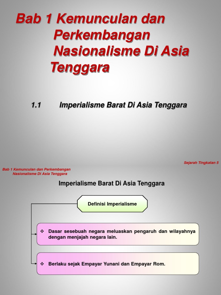 Imperialisme di asia tenggara pdf. Nasionalisme di asia tenggara imperialisme b nyatakan faktor faktor kemunculan nasionalisme di asia tenggara. Caranya dengan menjajah negara lain tujuan untuk kepentingan tertentu. Buku teks t5 mukasurat 3 4 imperialisme merupakan dasar sesebuah negara meluaskan pengaruh dan wilayahnya. Pendidikan co id secara etimologi imperialisme ini berasal dari kata latin yakni kata imperare yang artinya itu memerintah.
