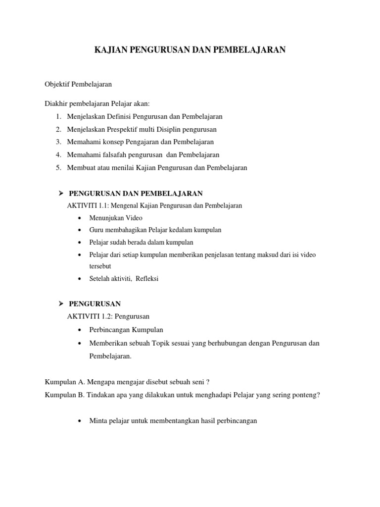 Kajian pengurusan dan pembelajaran pelajar. Definisi pengurusan proses merancang mengelola memimpin dan mengawal daya usaha ahli ahli organisasi dan menggunakan sumber sumber lain untuk mencapai matlamat yang ditentukan stoner 1984. Pelajar boleh membantu dengan cara membuat kesediaan belajar iaitu kematangan fizikal seperti berupaya dari segi kognitif afaktif dan kemahiran mengekalkan perhatian dengan beri tumpuan pengajaran guru tumpuan mendenga dan tumpuan minat. Darjah temubual guru dan pelajar soal selidik rakaman video dan analisa dokumen. Kajian pengurusan pembelajaran definisi konsep kepentingan perspektif multidisiplin kajian 3.