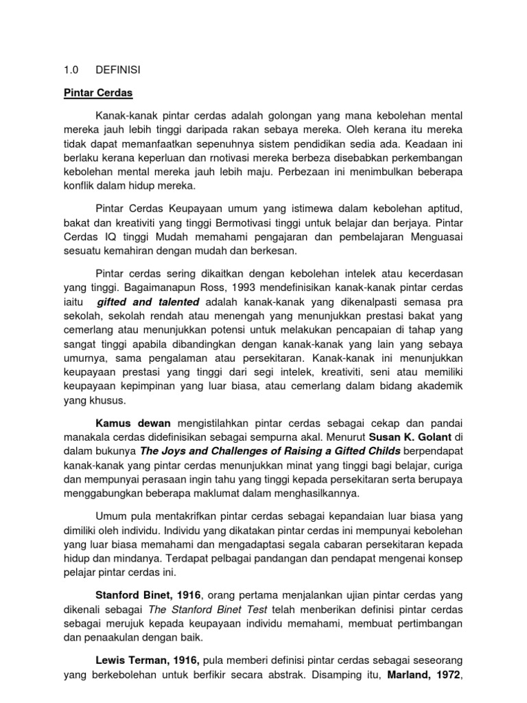 Salah satu caranya. Identitas anak pintar serta anak pintar yang umumnya kerap dikira suatu perihal yang tidak baik merupakan sensitivitas yang dipunyai oleh anak berbakat. Walau bagaimanapun perkara ini boleh menjadi suatu masalah pada kanak kanak tersebut kawan kawan rakan dan guru. Penulis mengupas definisi kanak kanak pintar cerdas secara menyeluruh dan melihat semua aspek pendapat tokoh tokoh yang pakar tentang kanak kanak pintar cerdas.