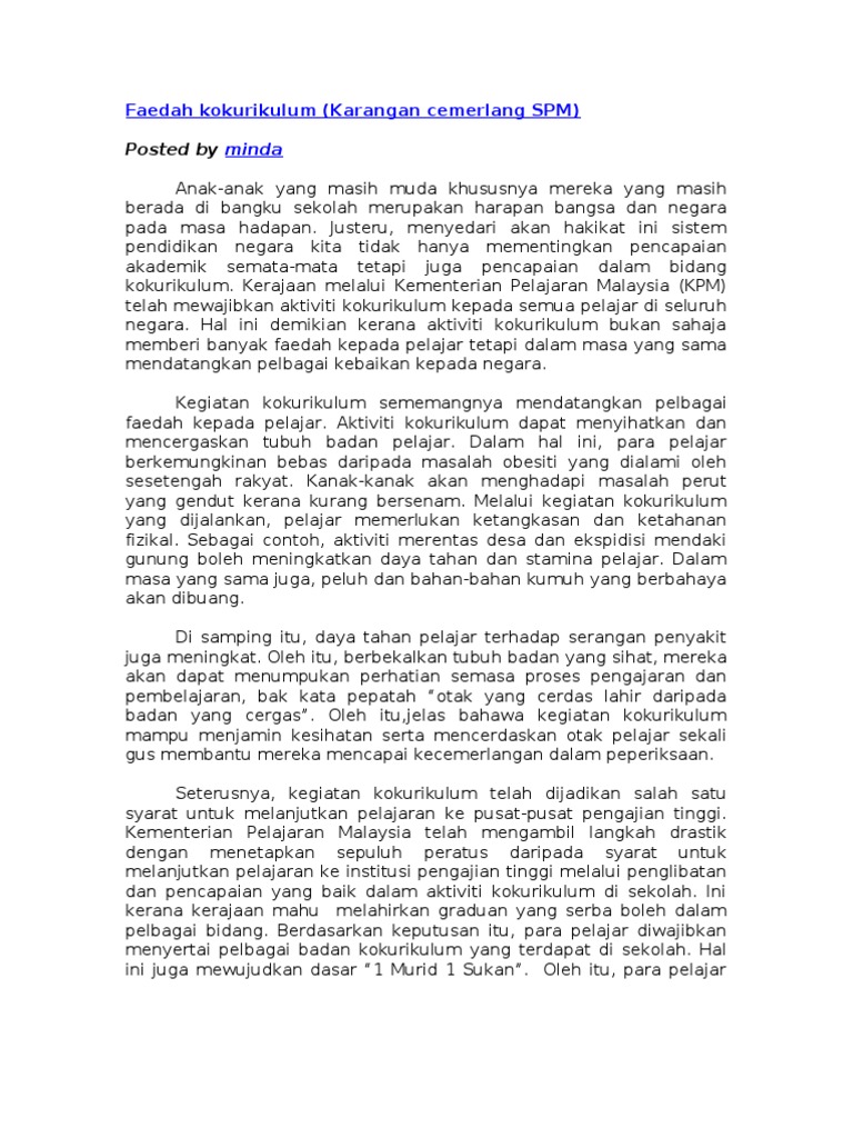 Ipendidikan karangan contoh contoh karangan spm bahasa melayu terbaik disemak dan dikemaskini pada pukul 4 04 pm 28 oktober 2020 panduan buat pelajar pelajar yang mengambil kertas peperiksaan bahasa melayu. Tanpa disiplin tidak mungkin seseorang pelajar dapat melakukan perkara perkara tersebut. Bagi mencapai matlamat ini guru hendaklah menunjukkan contoh disiplin yang baik atau role model kepada pelajar seperti bertatatertib berbudi bahasa bersopan santun bertimbang rasa bersimpati berdedikasi dan bersikap positif semasa berhadapan dengan pelajar pelajar mereka sama ada di dalam bilik darjah di sekitar sekolah mahupun di luar sekolah. Dalam meladeni arus pascamodenisme yang semakin mencabar dari semasa ke semasa ini nusa yang kita cintai ini semakin utuh dan terkenal di persada antarabangsa.