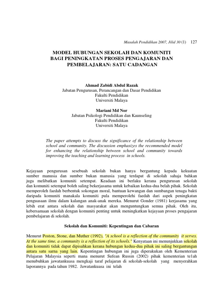 Kepentingan Hubungan Permuafakatan Sekolah Dan Komuniti Pdf