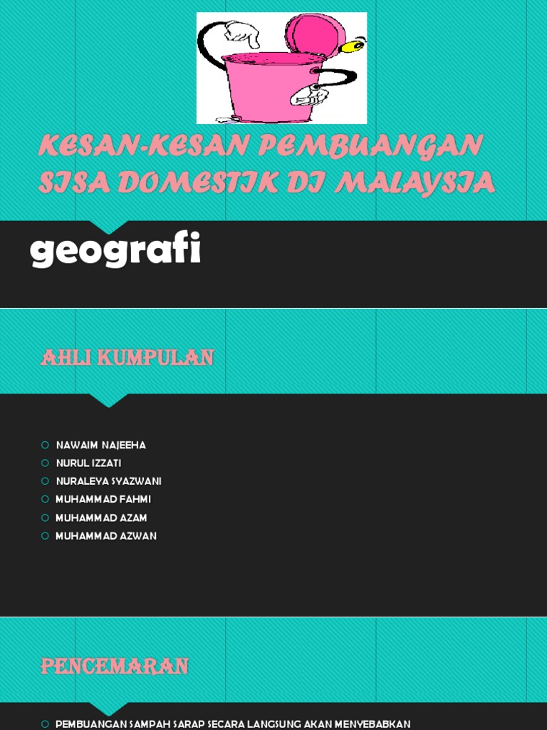 Kesan kesan pembuangan sisa domestik wabak penyakit. View 391582036 kesan kesan pembuangan sisa domestik di malaysia pdf from aa 1kesan kesan pembuangan sisa domestik di malaysia geografi ahli kumpulan nawaim najeeha nurul izzati nuraleya syazwani. Unknown 8 october 2018 at 05 52. Tumpahan minyak dari kapal minyak ke dalam laut atau sungai. Sisa cecair minyak masak kumbahan sisa pepejal makanan plastik kertas logam perabot lampin pakai buang.