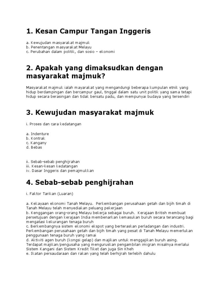 Kesan pembentukan masyarakat majmuk di malaysia. Pembentukan masyarakat majmuk di malaysia bermula apabila kemasukan migran daripada luar. Banyak konflik yang berlaku dalam proses pembentukan ini seperti peristiwa 13 mei 1969. Masyarakat majmuk di malaysia terdiri dari pelbagai etnik yang dikategorikan mengikut cara hidup pola penempatan pekerjaan dan pendidikan terdapat lebih 80 kaum di seluruh malaysia. Kesimpulannya pembentukan masyarakat majmuk di malaysia bermula apabila kemasukan migran daripada luar.