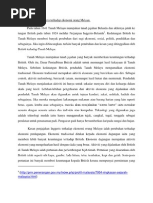 Kesan Penjajahan British Di Tanah Melayu Terhadap Ekonomi
