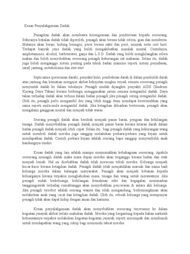 Kesan Penyalahgunaan Dadah Dalam Kalangan Remaja Karangan Spm