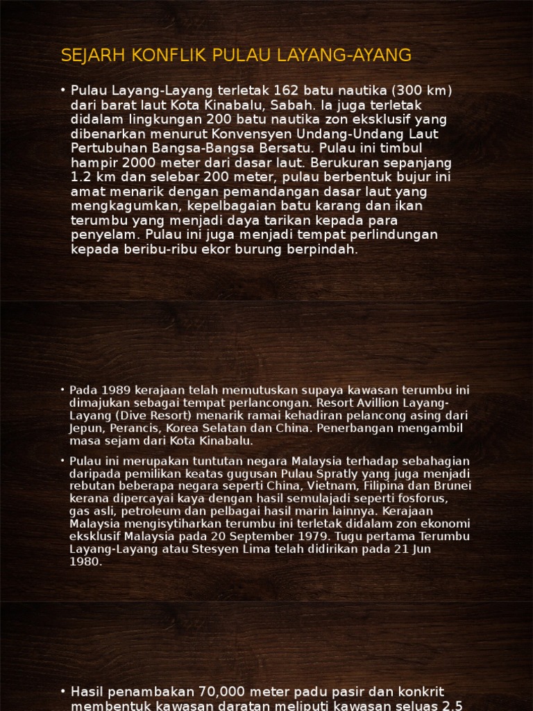 Konflik pulau layang layang pdf. Pulau ini adalah merupakan tuntutan buat negara malaysia kerana sebahagian daripada pemilikan di kepulauan spratly dan ia berdekatan dengan kawasan tanah. Oleh sebab itu pulau ini menjadi rebutan setiap bangsa bangsa dan menjadi daerah konflik yang berkepanjangan sehingga banyak menimbulkan korban penduduk asli. Pulau sipadan dan ligitan 2. Berukuran sepanjang 1 2 kilometer dan selebar 200 meter pulau berbentuk bujur ini amat menarik dengan pelbagai pemandangan dasar laut yang mengagumkan kepelbagaian batu karang dan ikan terumbu termasuk haiwan laut dalam yang menjadi daya tarikan kepada para penyelam.
