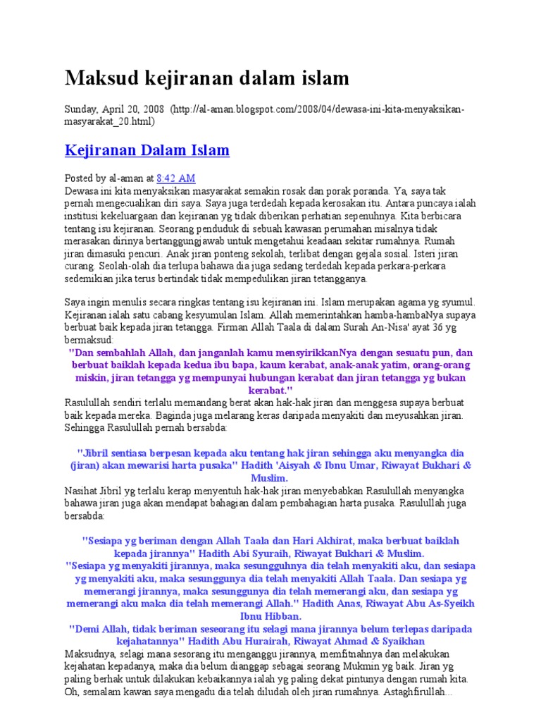 Konsep kejiranan dalam islam. Utusan publication distributors sdn bhd. Oleh itu islam telah menekankan kepentingan menjalinkan hubungan dalm kalangan masyarakat sekeliling. Oleh itu islam telah menekankan kepentingan menjalinkan hubungan dalam kalangan masyarakat sekeliling. Konsep kejiranan dalam islam jiran juga bererti ahli ahli 40 buah rumah setiap penjuru yang mengelilingi rumah individu.