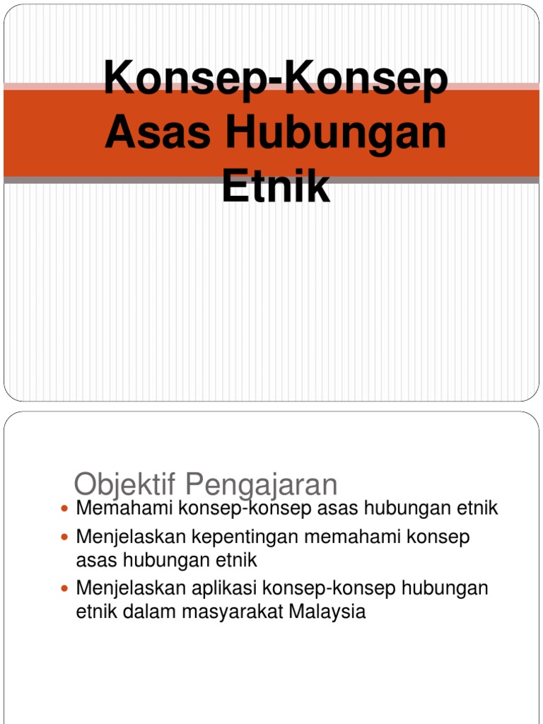 View notes konsep asas hubungan etnik baru pdf from cs 2143 at german malaysian institute. Bab ini akan menjelaskan beberapa konsep penting yang mempunyai kaitan rapat dalam membicarakan aspek hubungan etnik di malaysia. Tiga konsep penting yang ditumpukan ialah masyarakat budaya dan perpaduan. Yang mendalam tentang hubungan etnik yang wujud harus dibina di kalangan masyarakat terutamanya golongan remaja.