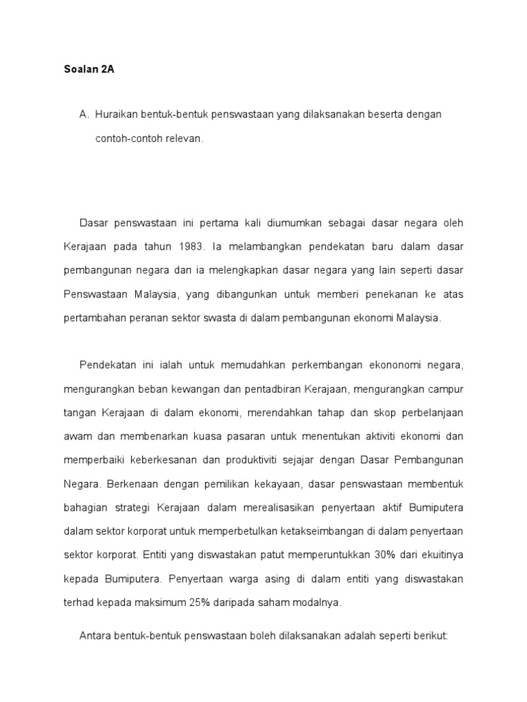 Langkah Langkah Yang Diambil Oleh Kerajaan Dalam Memastikan Penswastaan