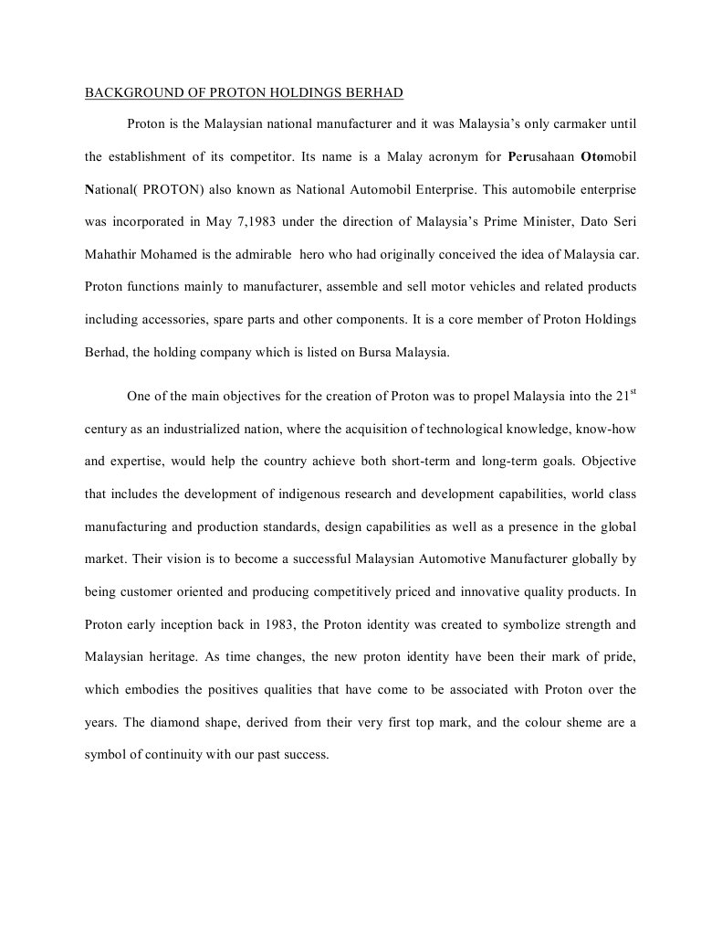 Latar belakang syarikat proton holdings berhad. It was incorporated on july 28 2003. Padini merupakan syarikat yang menjalankan kesemua 4p. 0profil syarikat 1 1latar belakang syarikat proton holdings berhad atau lebih dikenali sebagai proton merupakan salah satu syarikat automobil yang terkenal di malaysia. It operates in the motor vehicle manufacturing industry.