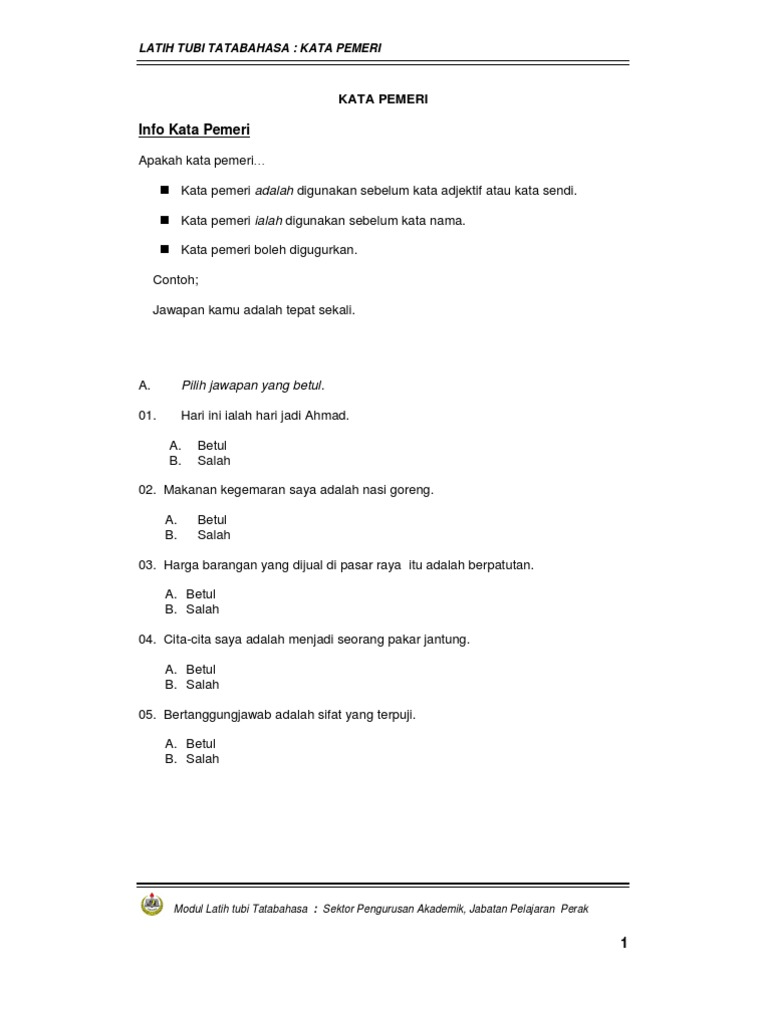 Nota dan latihan kata pemeri. Isi tempat kosong berikut dengan kata pemeri yang betul. Koleksi latihan bahasa melayu tahun 1 6. Latihan kata tugas tahun 6.