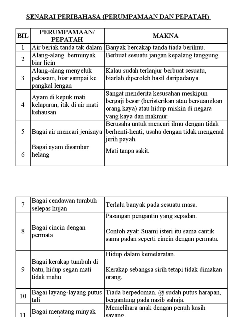 Bagai enau dalam belukar melepaskan pucuk masing masing. Sehari sehelai benang lama lama menjadi kain. Peribahasa ini memberi maksud sebagai terlalu banyak pada sesuatu masa peribahasa ini memang amat sinonim dalam masyarakat luarbandar atau masyarakat kampong tradisional dimana mereka akan hanya dapat melihat cendawan yang tumbuh lazimnya selepas hujan. 15 seperti cendawan tumbuh selepas hujan.