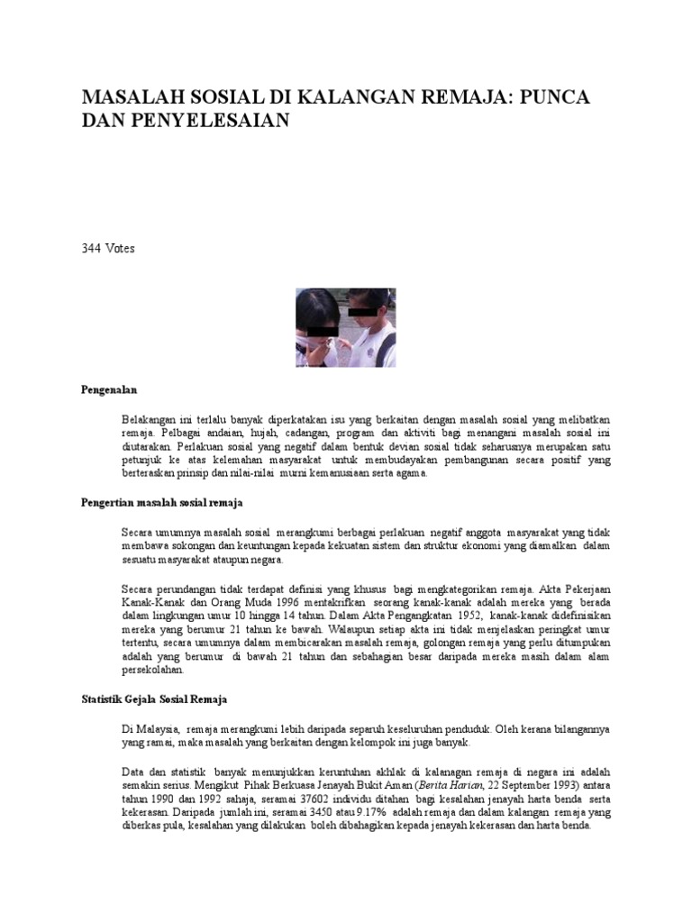 Masalah Sosial Di Kalangan Remaja Punca Dan Penyelesaian
