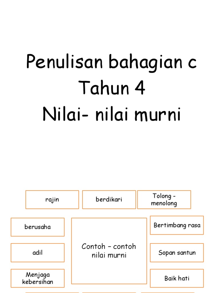 Rancangan tahunan bm tahun 4 dan kriteria penulisan bm followers. Setiap hari dia datang ke sekolah dengan pakaian yang kotor dan tidak kemas. Contoh pengajaran dan nilai nilai murni bahagian c penulisan bahagian c 1 tuliskan beberapa nilai pengajaran yang boleh kamu peroleh daripada petikan di bawah. Nilai murni bm tahun 4.