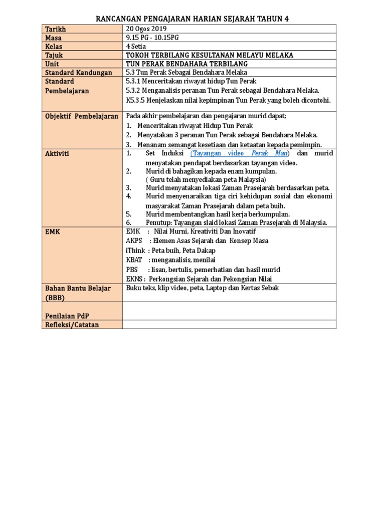 Sumber dan aktiviti dalam fail peta minda visual dan komik asyikin ismail mengikut sukatan pelajaran kssr terbaru ia ay s ku ri d per menepati dokumen standard kurikulum dan pentaksiran dskp oleh isbn 967 5421 27 3 cum c kemahiran berfikir aras tinggi kbat 4 no. Semasa tun perak menjadi bendahara 5 3 3 menyatakan kebijaksanaan tun perak dalam menangkis serangan siamdi melaka 5 3 4 menyatakan peranan tun perak dalam membina kegemilangankesultanan melayu melaka k5 3 5 menyatakan sifat sifat kepimpinan. Termasuklah nilai nilai baik murni dan mengutamakan nilai kemanusiaan. 10 1 usj 21 3 47360 subang jaya selangor darul ehsan.