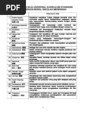 Nilai nilai moral dan huraian. 18 nilai universal pendidikan moral kssm muat turun. Hak asasi manusia 6. Dskp pendidikan moral tingkatan 4 dan 5 kssm bermula 2017 kurikulum bersepadu sekolah menengah akan digantikan secara berperingkat dengan kurikulum standard sekolah menengah.