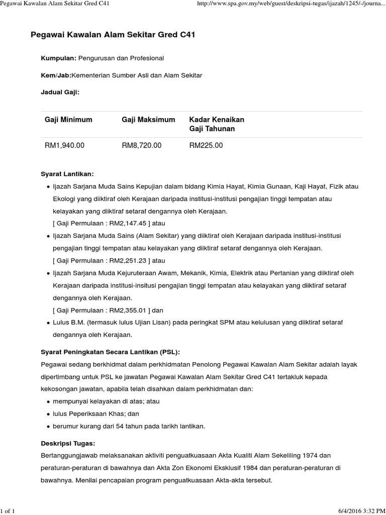 Fakta penting yang anda perlu tahu tentang calon calon temuduga kerja kerajaan. A mempunyai kewarganegaraan malaysia. Secara asasnya seorang pegawai kawalan alam sekitar gred c41 mempunyai tanggungjawab seperti berikut. Pegawai kawalan alam sekitar gred c41 c44 c48 c52 c54.