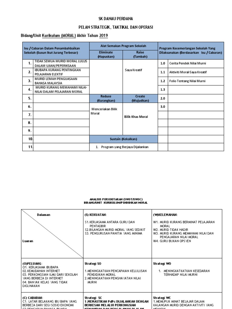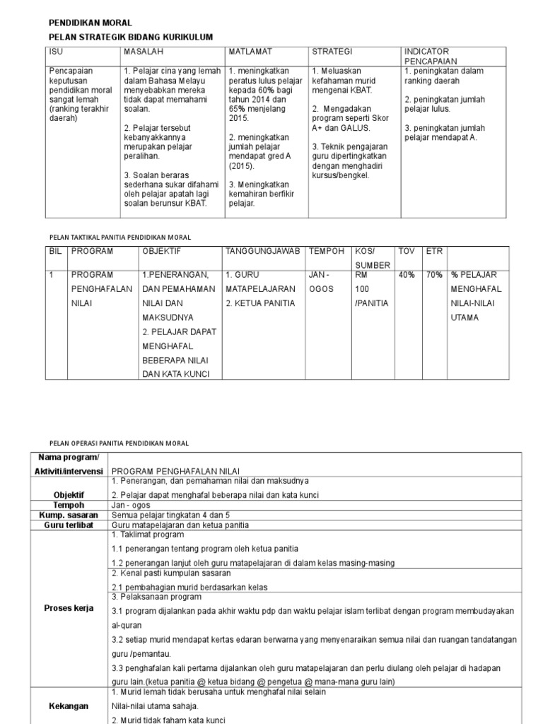 Pelan strategik tahun 2016 pendidikan moral sk kg selamat isu proses pengajaran dan pembelajaran yang mantap. Panitia pendidikan moral 2013 nama program. 1 jadual 1 2017 2019. Borang2 pelan strategik taktikal dan operasi serta rekod pelaksanaan.