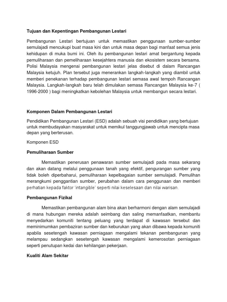 Pembangunan lestari di malaysia pdf. Semua rakyatmalaysia boleh memberikan pandangan tentang kelestarian bandardi malaysiamelalui forumini agendabaharu bandarini telah diterima dalampersidangan bangsa bangsa bersatutentang perumahan dan pembangunan bandar lestari habitat iii di quito ibunegara ecuador pada 20oktober2016. Pdf on jan 1 2013 hanifah mahat and others published kesedaran pendidikan pembangunan lestari menerusi program sekolah lestari dalam kalangan pelajar find read and cite all the research you. Abstrak tidak melebihi 250 patah perkataan ditulis dalam bahasa malaysia atau baha sa inggeris dan sertakan sekurang kurangnya tiga kata kunci. 36 untuk tahun ini.