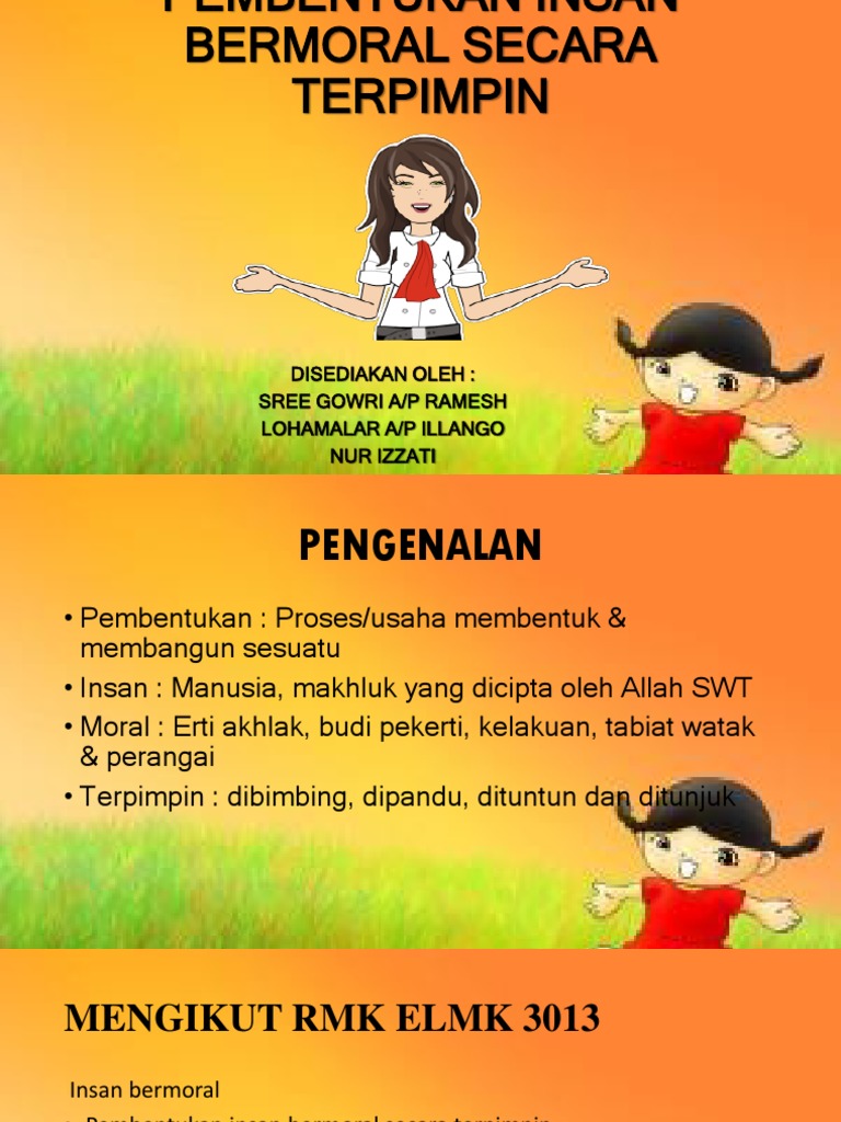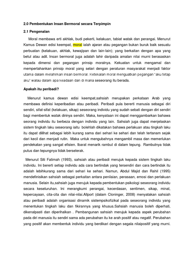 View pembentukan insan bermoral secara terpimpin pdf from aa 1pembentukan insan bermoral secara terpimpin disampaikan oleh hj muhammad asri bin madi pensyarah jabatan pendidikan islam dan. Tiga aspek dalam pembentukan insan bermoral ialah penaakulan moral penaakulan moral iaitu pertimbangan atau fikiran secara rasional dan berautonomi bebas. Membuat penilaian pada model model insan terpilih berkaitan pendidikan dalam pelbagai bidang sebagai idola 10. Berakhlak mempunyai ajaran tentang baik buruk sesuatu perbuatan atau kelakuan terpimpin.