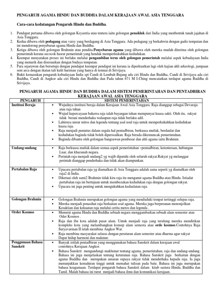 Pengaruh hindu dan buddha dalam sistem pemerintahan kerajaan awal di asia tenggara. F1 penggunaan gelaran raja. 8 markah f1 mengamalkan sistem beraja seperti di india h1a menggunakan gelaran raja f2 raja berada di puncak pemerintahan h2a di bawah aja terdapat kerabat diraja h2b di. Agama hindu buddha pemerintahan candi bahasa sanskrit a terangkan pengaruh hindu buddha dalam sistem pemerintahan dan pentadbiran kerajaan awal di asia tenggara. 6 markah c.