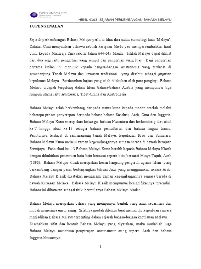 Pengenalan sejarah perkembangan bahasa melayu. Viewing this page requires a browser capable of displaying frames. Pengantar pengajian profesional gpp1063 2. Peralihan bahasa melayu kuno ke bahasa melayu klasik 1. Wacana penulisan gwp 1092 2.