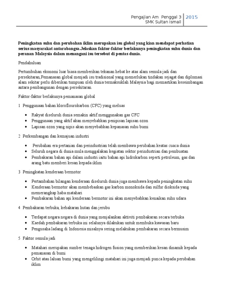 Malaysia juga jarang sekali mempunyai satu tempoh beberapa hari dengan tidak ada langsung cahaya matahari kecuali pada musim. Peningkatan suhu bumi terima kasih pengendalian pemanasan global 1 menghilangkan karbon carbon sequestration cara yang paling mudah untuk menghilangkan karbon dioksida di udara adalah dengan menanam pohon. Perubahan iklim pemanasan global mengakibatkan peningkatan suhu di lautan pasifik. Faktor kekasaran bandar dan fenomena pulau haba telah dilihat sebagai faktor dominan.