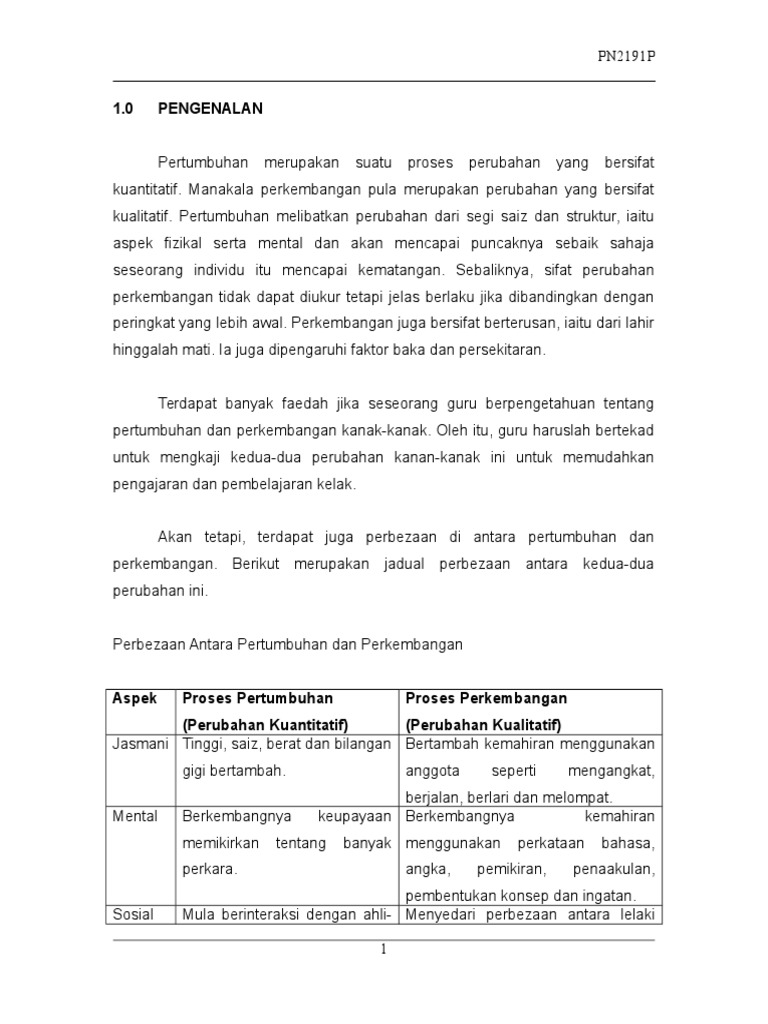Garrison perkembangan adalah dihasilkan daripada tindakan yang saling berkaitan di antara perkembangan jasmani dan pembelajaran. Pertumbuhan dan perkembangan kanak kanak. Menurut buku perkembangan kanak kanak nukilan haliza hamzah joy n. Pertumbuhan berasal dari kata tumbuh yang artinya adalah proses bertambahnya ukuran berbagai organ fisik yang disebabkan karena adanya peningkatan ukuran dari masing masing sel organ terkait.