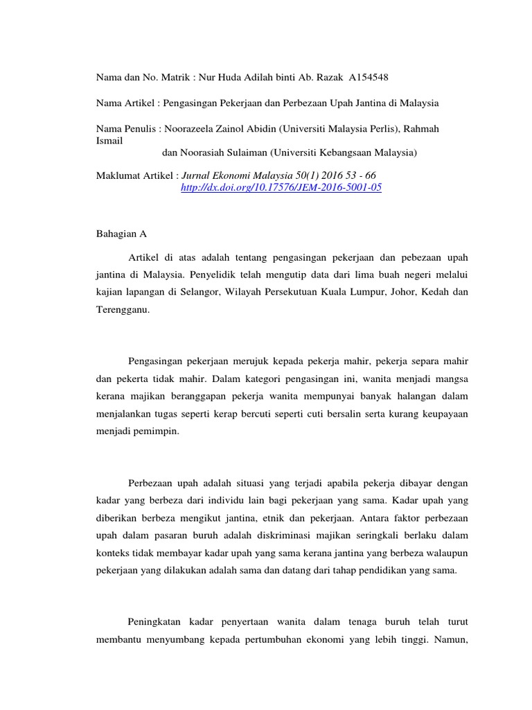 Kerja lapangan pada tahun 2012 di lima buah negeri iaitu selangor wilayah persekutuan kuala lumpur johor kedah. Pengasingan pekerjaan dan perbezaan upah jantina di malaysia. Mengikut teori ini upah pekerja ditentukan oleh. Upah bulanan pula mencatatkan kadar pertumbuhan tahunan sebanyak 6 3 peratus kepada rm2 463 berbanding rm2 312 pada tahun sebelumnya jadual 1.
