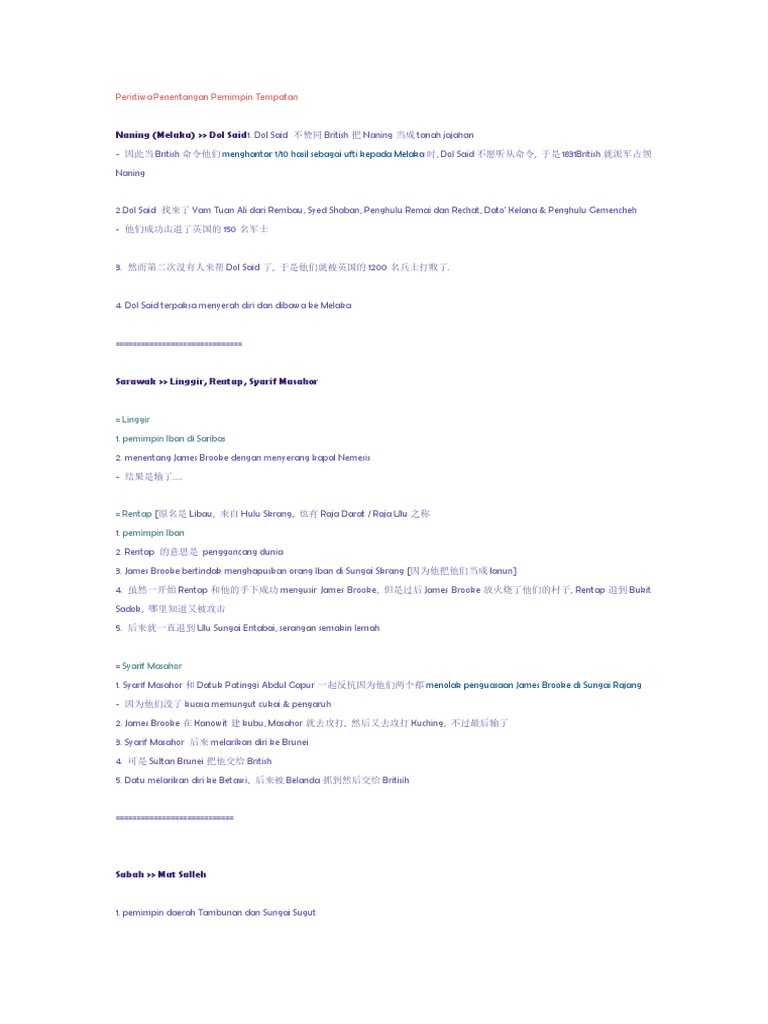 Scribd is the world s largest social reading and publishing site. 3 peristiwa penentangan dol said. Pelaksanaan undang undang barat oleh british telah menyulitkan penduduk tempatan. 1 1849 menyerang kapal nemesis dekat batang lupar.