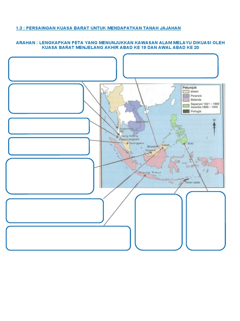 Kedatangan pengembara pedagang dan syarikat perdagangan telah meneroka jalan ke timur untuk mencari peluang ekonomi dan wilayah jajahan. Keadaan ini mendorong kuasa barat bersaing sesama sendiri bagi mendapatkan jajahan baru di asia tenggara. Semakin banyak tanah tanah jajahan semakin tinggi martabat mereka di kalangan kuasa kuasa lain. 1 3 persaingan antara kuasa barat untuk mendapatkan tanah jajahan kuasa barat berlumba lumba memiliki tanah jajahan untuk kepentingan ekonomi.