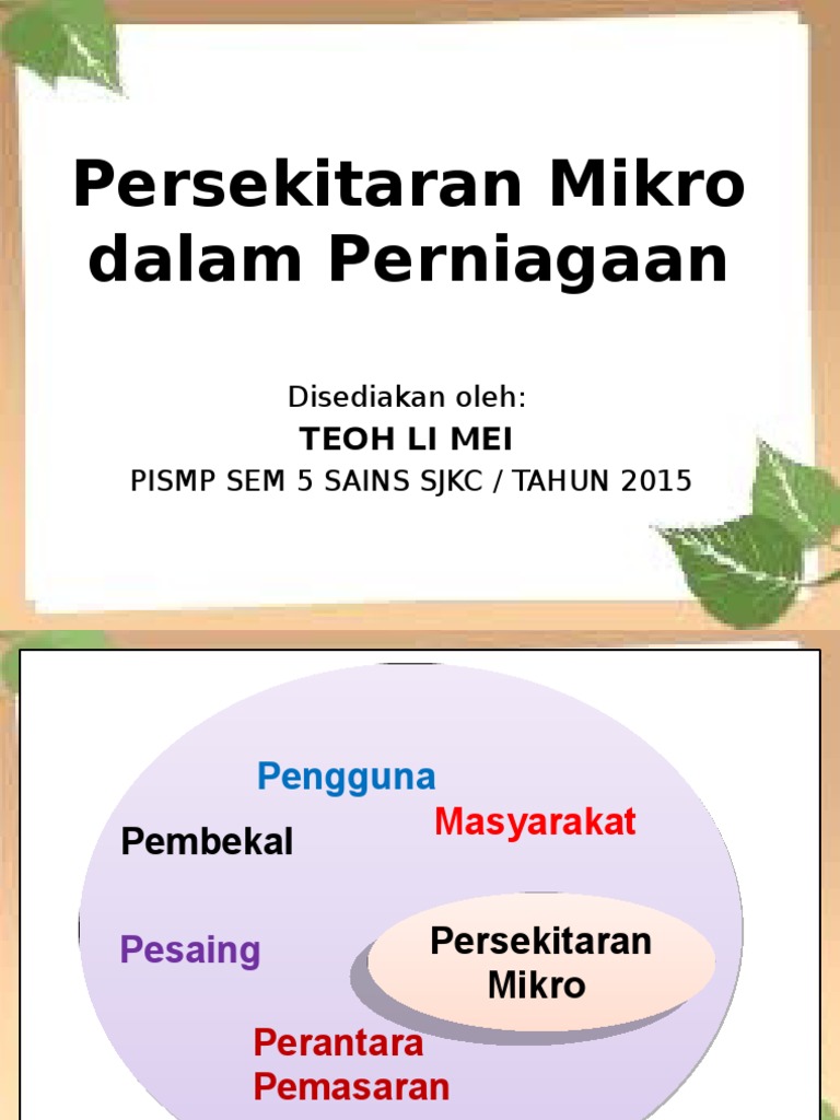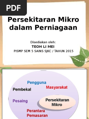 Dalam tugasan ini kita akan membincangkan persekitaran makro dalam perniagaan. Persekitaran perniagaan persekitaran luaran umum makro persekitaran luaran spesifik mikro persekitaran dalaman analisis persekitaran model industri porter ana slideshare uses cookies to improve functionality and performance and to provide you with relevant advertising.